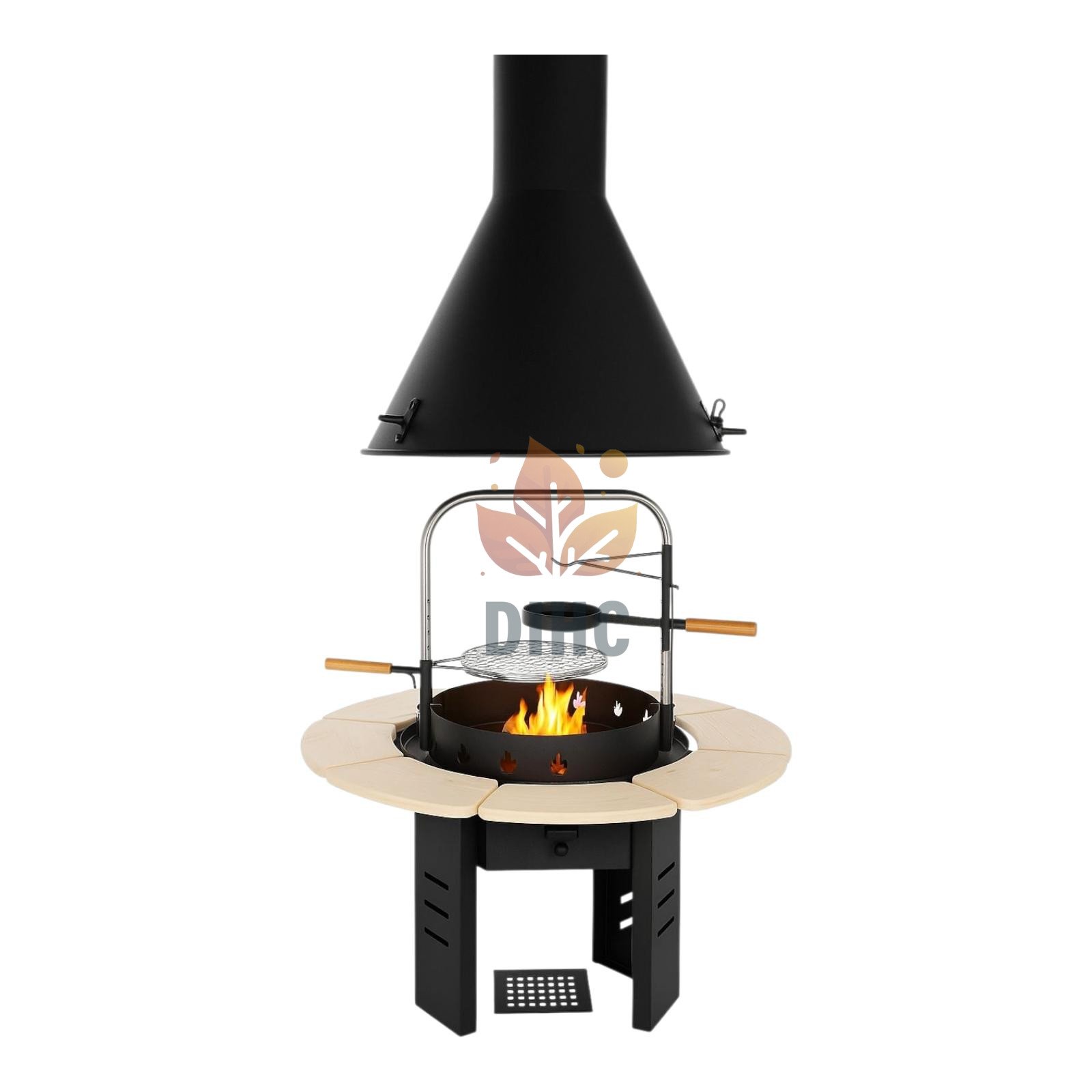 Grillen har en robust stålkonstruktion som ger stabilitet och lång livslängd. Dessutom är den utrustad med en förlängningsbar skorsten som effektivt leder bort röken och skapar en renare grillupplevelse. Utöver det finns ett praktiskt sidobord som ger extra arbetsyta, medan en stadig krok låter dig hänga grillverktyg nära till hands. Som resultat blir din grillning både smidigare, säkrare och mer njutbar varje gång.